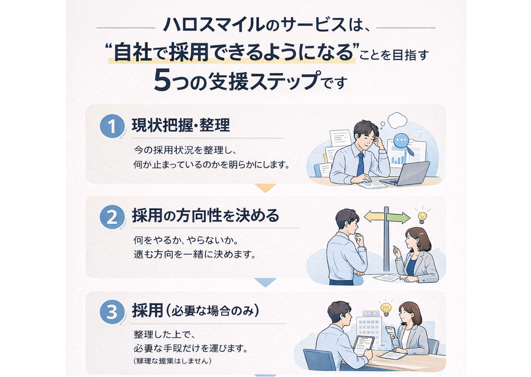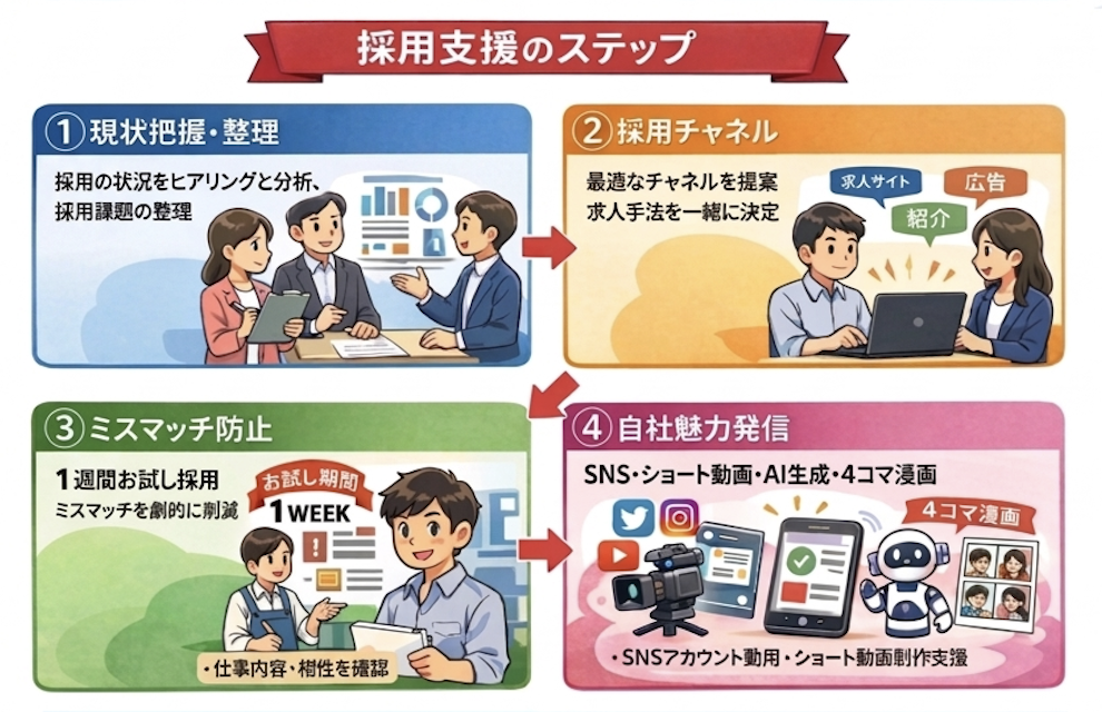 企業が「自社で採用できるようになる状態」を作ることを目的とした支援を